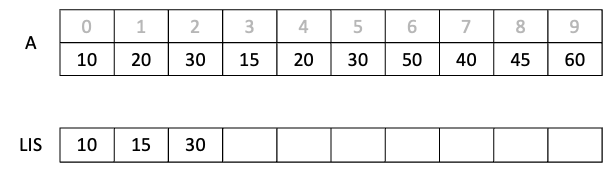 중간 중간 대체해주는 과정에서 대체를 안 해주면 그 다음 수들이 LIS 리스트에 들어올 수 없다. 만약에 주어진 수열이 {10, 20, 30, 15, 20, 30, 50, 40} 까지라고 하더라도 {10, 15, 20, 30, 50} 이나 {10, 15, 20, 30, 40} 이나 길이는 같다. 따라서 우리는 '길이'를 구하는데에만 집중하면 된다.