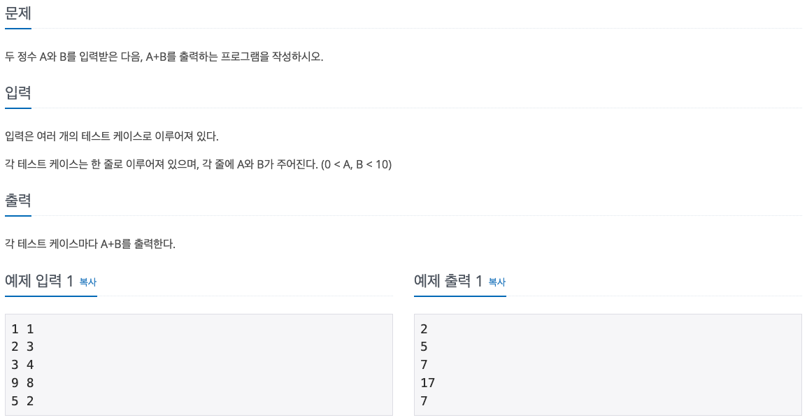 두 정수 A와 B를 입력받은 다음, A+B를 출력하는 프로그램을 작성하시오.