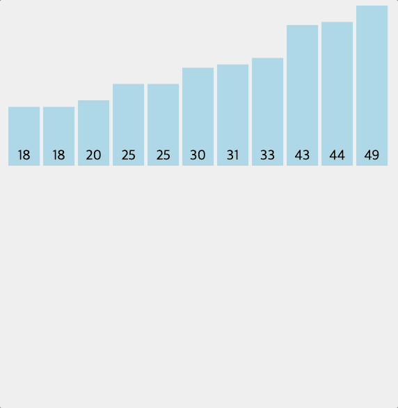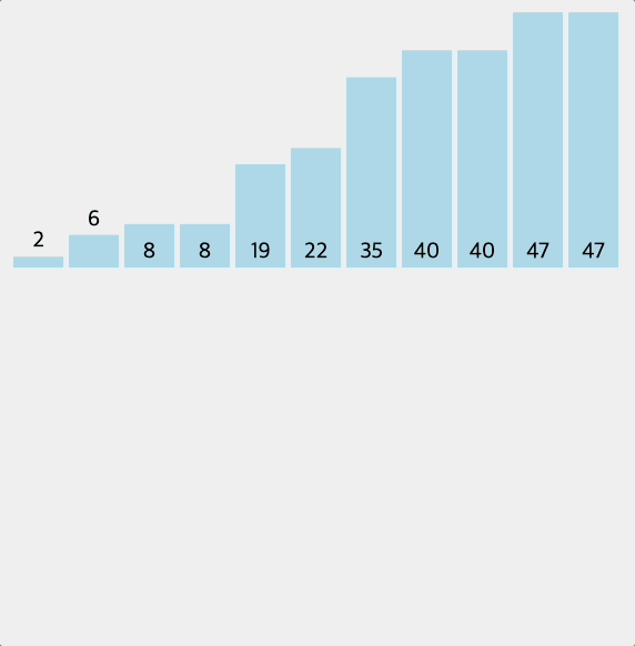 - (N - 1)번 진행된다. (N - 1)번째에 마지막 요소는 알아서 가장 큰 요소로 배치되기 때문이다.