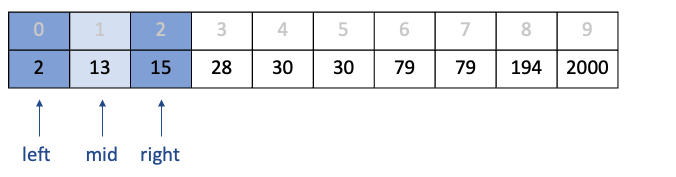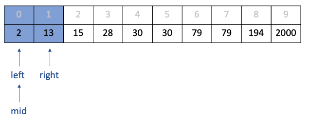 그림을 통해 살펴보자. 아래와 같은 데이터셋이 있고, target = 13라고 가정한다. 즉, 13보다 큰 값이 처음 나타나는 위치를 찾는다.